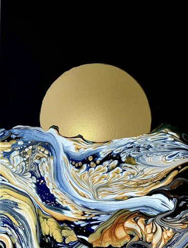 Experience the soothing rhythm of fluid art as you pour, tilt and swipe with a mini dustpan to create rippling water scenes illuminated by a glowing sun or moon. Every piece becomes a reflection of motion and light - uniquely yours